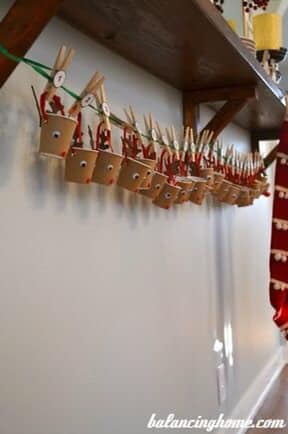 This one is very similar to the DIY tree advent calendar; the only difference is that you just hang the polystyrene cups as is. This is a great, and simple idea for parents who are on the go and don’t have much time to plan and spend hours on decorating. You can fill the cups with whatever you think your child would enjoy from sweet treats to small little toys or spoils.